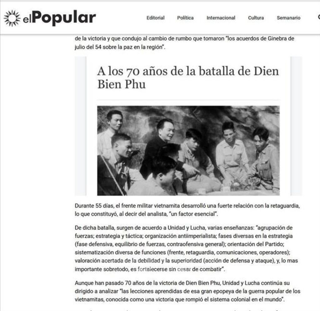 Le journal El Popular a souligné que la célébration des 70 ans de la Victoire de Diên Biên Phu était un événement politique de la plus haute importance pour promouvoir la tradition patriotique et l'héroïsme révolutionnaire de la population vietnamienne.