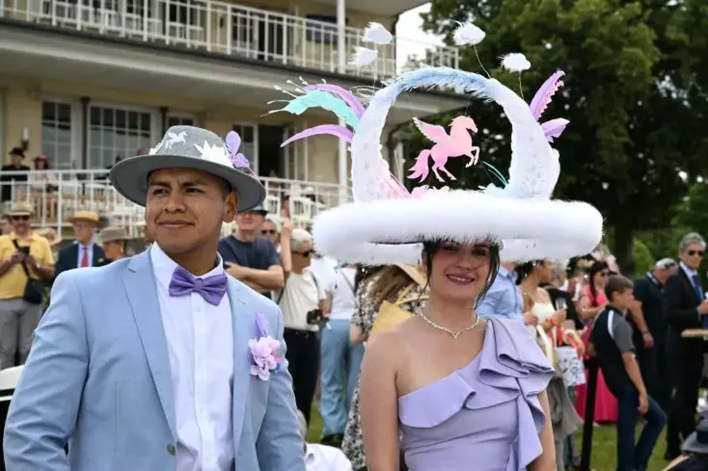 | Des spectateurs avant le départ du Prix de Diane. |
