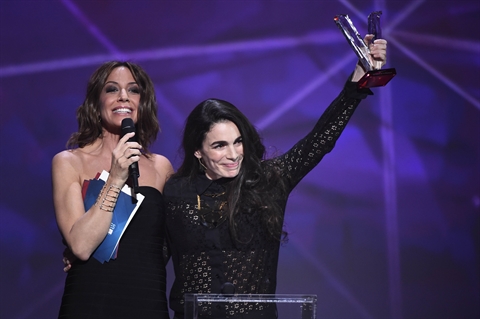 | La Franco-Israélienne Yael Naim (droite) est sacrée artiste féminie de l'année aux Victoires de la musique, le 12 février à Paris. |