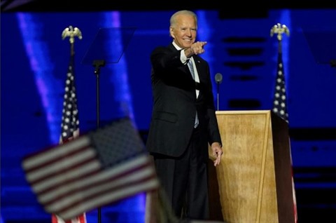 | Le président élu Joe Biden s'adresse à ses supporteurs à Wilmington le 7 novembre, après avoir été déclaré vainqueur de l'élection américaine. |