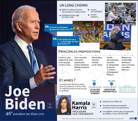 Après quatre jours de suspense tendu, l'ancien vice-président de Barack Obama a franchi le seuil "magique" de 270 grands électeurs.
