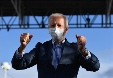 Portant un masque noir, Joe Biden est arrivé en courant sur la scène de son discours de victoire, sur fond d'une chanson de Bruce Springsteen, comme pour démentir l'image de candidat vieillissant qui a pesé sur sa campagne menée en sourdine.