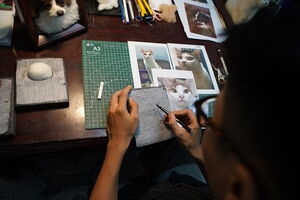 Dans une petite boutique de la rue Hồ Đắc Di (arrondissement de Đống Đa, Hanoï), Hoàng Tuấn Anh greffe de la mousse verte sur son œuvre nommée "L’allée".