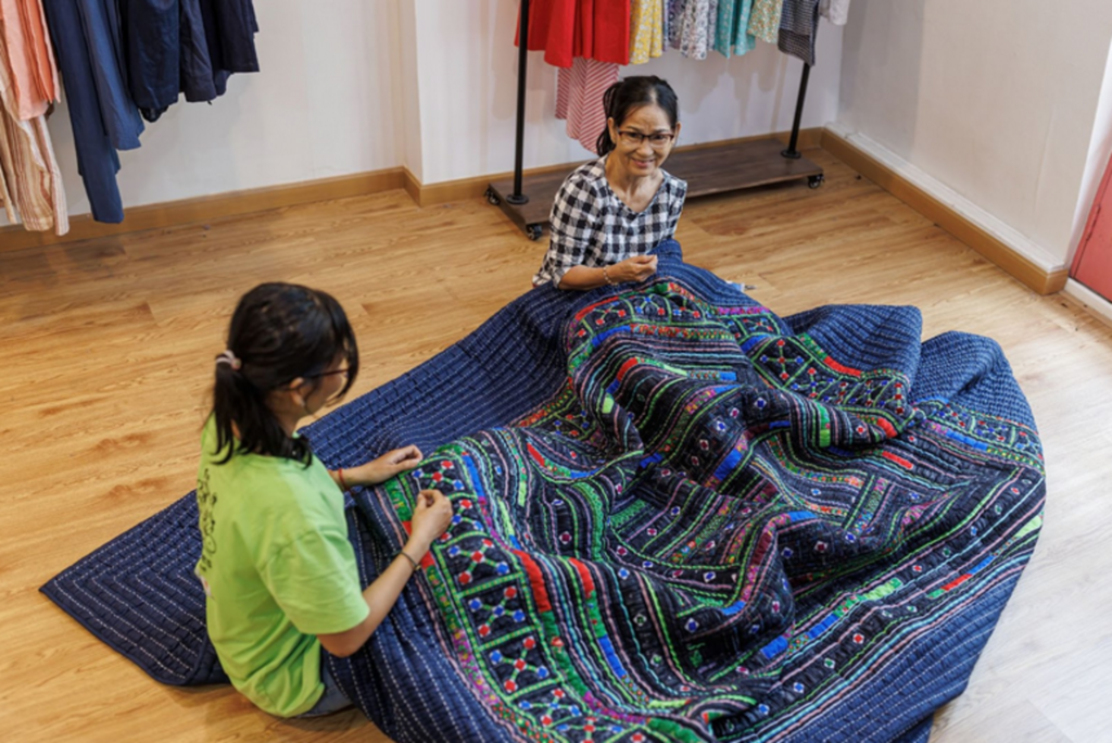Depuis fin juin 2023, le magasin phare de Mekong Quilts au 85 rue Pasteur à Hô Chi Minh-Ville, a lancé un nouvel événement mensuel où l’une des artisanes de Mekong Quilts fait une démonstration de quilting pour le plaisir des visiteurs et des amateurs de produits faits-main. En tant que première artisane à organiser ce type de rencontre en direct à Hô Chi Minh-Ville, elle est heureuse d’interagir avec des touristes malgré la barrière de la langue.
