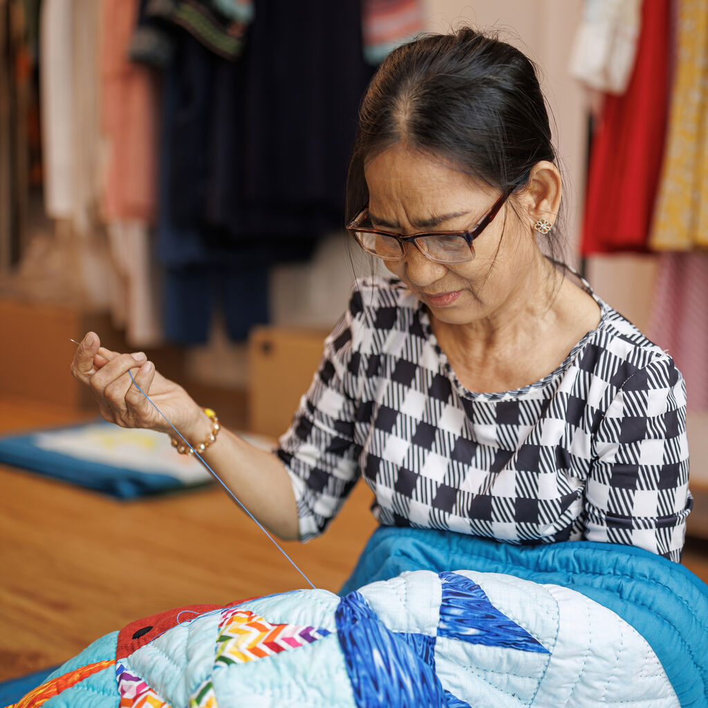 “Vous savez, pour nous les quilteuses, se faire percer le doigt par des aiguilles est une affaire presque quotidienne !”, dit-elle en riant. Elle est persuadée que le succès d’une entreprise sociale telle que Mekong Quilts réside dans des pratiques organisationnelles fondamentalement saines. Chacun est formé pour être performant dans ses propres rôles et tâches. “Le département couture, le département patchwork, le contrôle qualité, l’emballage, absolument tout le monde doit être coordonné !”, explique-t-elle. Cela garantit que les clients reçoivent leurs marchandises à temps et sans aucune mauvaise surprise.