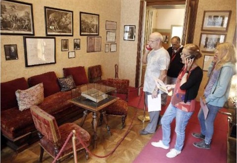 | Des touristes visitent le 19 septembre 2014 le cabinet de Sigmund Freud à Vienne (en Autriche). |