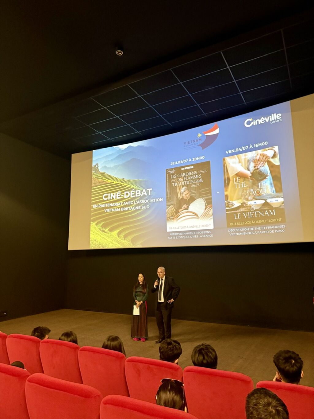 | Le maire de la ville de Lorient, Fabrice Loher, a assisté à une projection de films de jeunes cinéastes vietnamiens lors d’un événement culturel. |