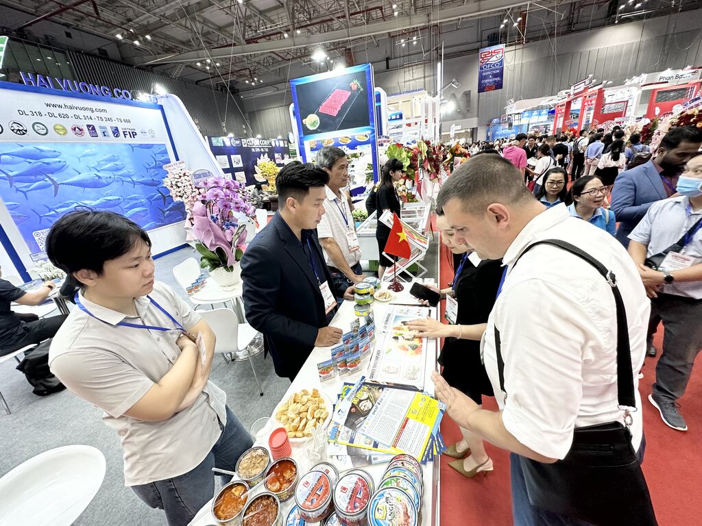 Pendant l'événement, de nombreuses activités commerciales ont eu lieu, notamment la signature de contrats d'achat et de fourniture de produits aquatiques, ainsi que des accords de coopération stratégique dans le domaine de l'aquaculture et de la transformation des fruits de mer. Cette année, Vietfish a vu la participation de nombreux fournisseurs internationaux de produits aquatiques, notamment des États-Unis avec leurs célèbres produits à base de saumon d'Alaska, ainsi que des fournisseurs d'Indonésie, d'Inde, de Russie, du Japon et de Chine.