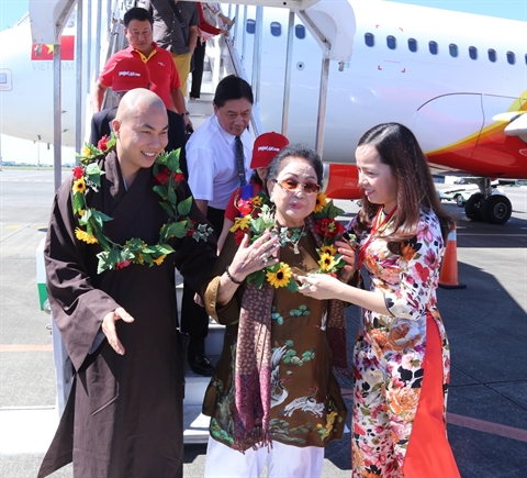 | Les passagers du premier vol ont reçu des fleurs de Vietjet. |