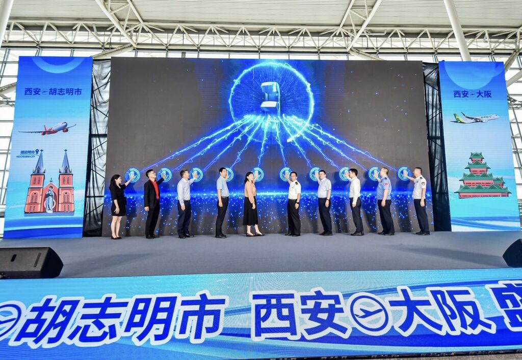 | La cérémonie d’ouverture de la ligne Xi'an-Hô Chi Minh-Ville, tenue le 2 juillet à Xi'an. |