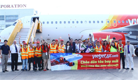 | Cérémonie de reception du nouvel Airbus A320 de VietjetAir à l’aéroport international de Tân Son Nhât. Photo : VietjetAir/CVN |