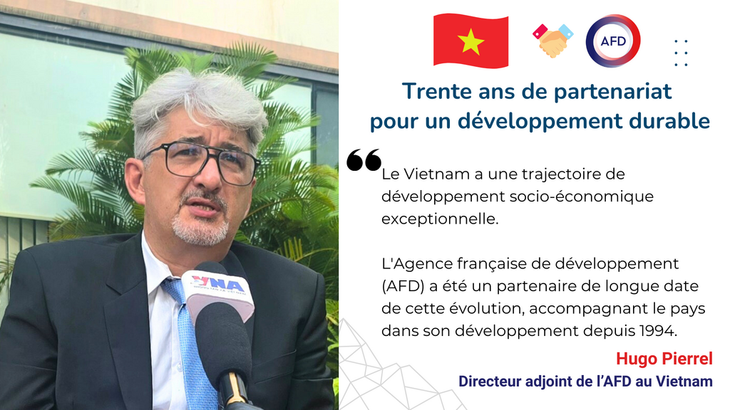 Selon le directeur adjoint de l’AFD, Hugo Pierrel, au cours des 80 dernières années, le Vietnam a traversé "une trajectoire de développement socio-économique exceptionnelle". Passé d'un pays moins avancé (PMA) à un pays à revenu intermédiaire, il s'apprête, d'ici 2027, à atteindre le statut de "pays à revenu intermédiaire de la frange supérieure". Cette ascension fulgurante, qui s'est traduite par une réduction de la pauvreté extrême de 45% à moins de 20%, a été rendue possible par des réformes structurelles et une croissance durable.