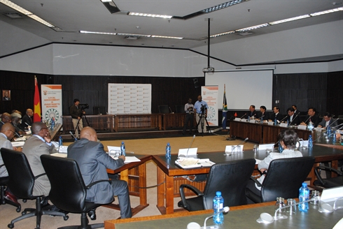 | Séance de travail de la délégation du Comité des affaires ethniques du gouvernement, conduite par son président, le ministre Giang Seo Phu, le 25 août en Afrique du Sud |
