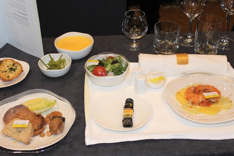 | À cette occasion, ont été présentés des plats spécialement préparés pour les vols Paris - Hanoï/Hô Chi Minh-Ville, aux saveurs typiques de la France et du Vietnam. |