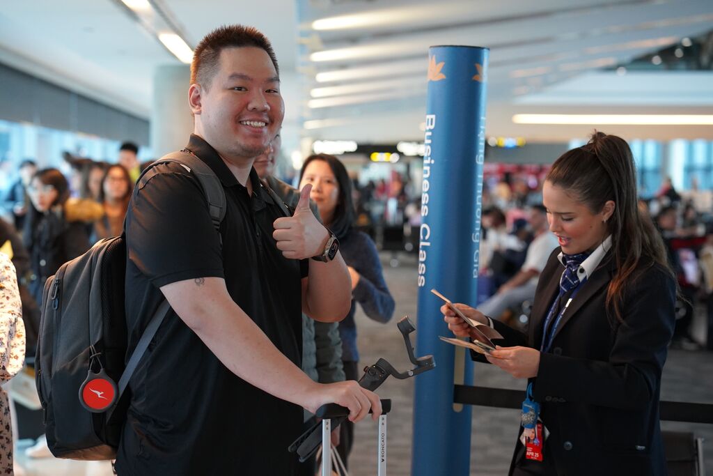| Les premiers passagers du vol direct entre Melbourne et Hanoï, le 15 juin. |