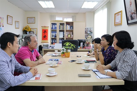| Rencontre entre la rédactrice en chef du "Courrier du Vietnam" (2e à droite) et le directeur de publication de l'hebdomadaire économique "Cresus" de l'Algérie (2e à gauche). |