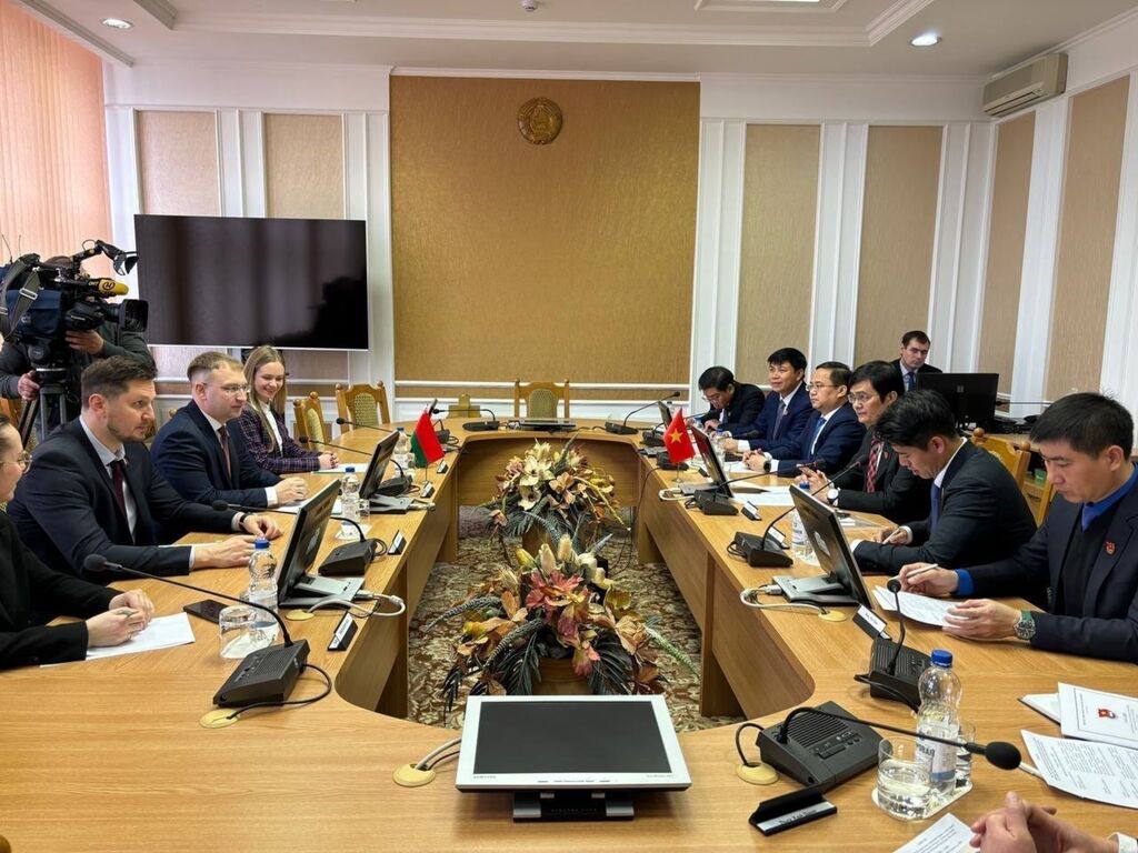 Travaillant avec Sergei Klishevich, membre de la Chambre des représentants et secrétaire de la Ligue de la jeunesse communiste de Biélorussie, Bùi Quang Huy a proposé que les deux parties intensifient leur coopération pour la sensibilisation auprès des jeunes sur le Vietnam, la Biélorussie et leur amitié et leur solidarité.