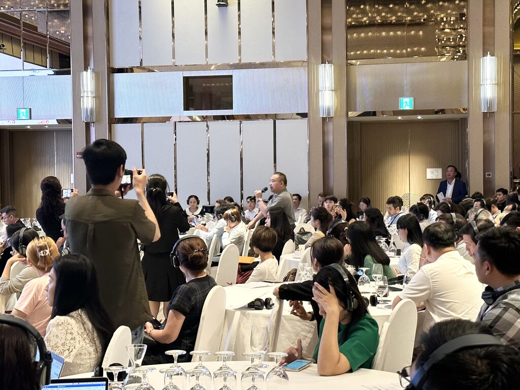 | Le représentant d'une entreprise vietnamienne pose des questions sur les solutions de réduction des émissions de gaz à effet de serre, lors du colloque. |