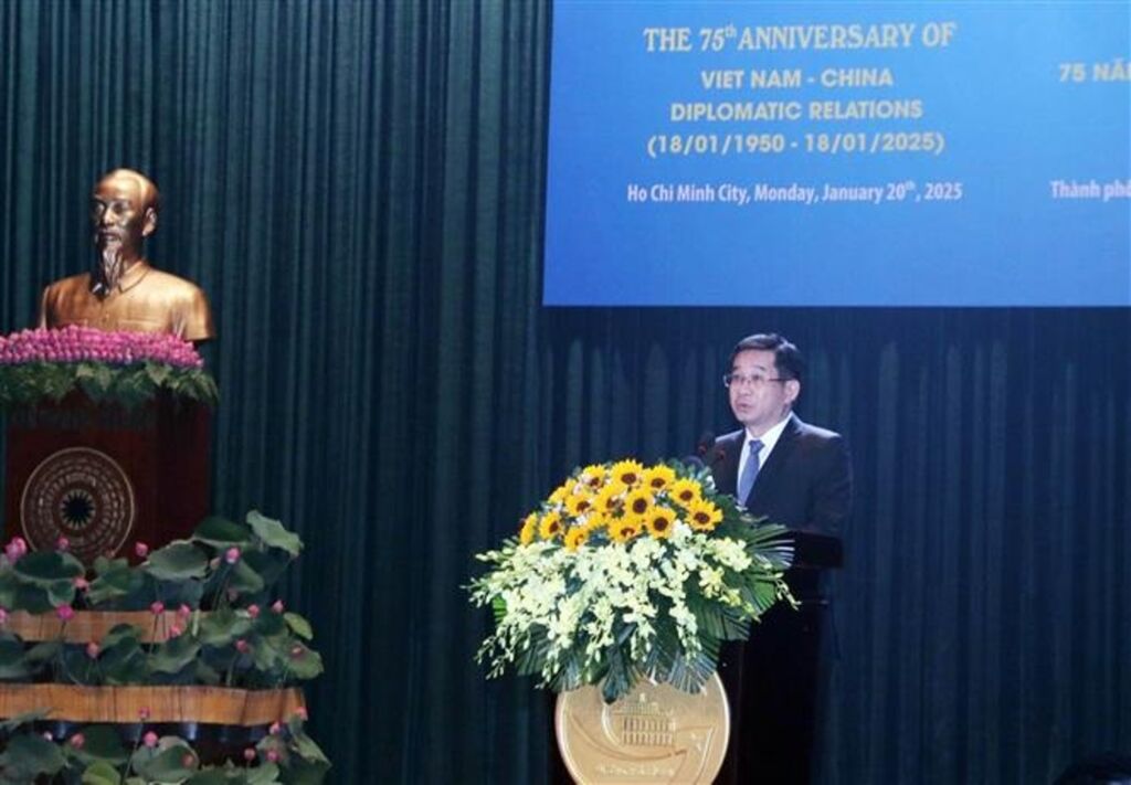 | Le vice-président permanent du Comité populaire de Hô Chi Minh-Ville, Duong Ngoc Hai, lors d'une cérémonie célébrant le 75ᵉ anniversaire de l'établissement des relations diplomatiques entre le Vietnam et la Chine. |
