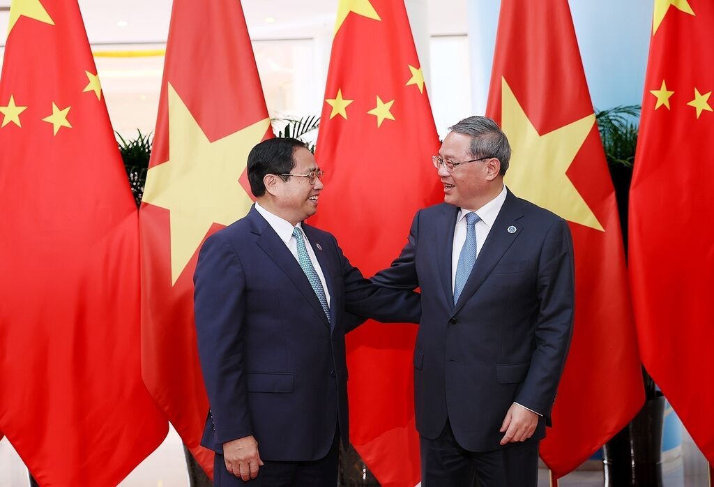 | Le Premier ministre vietnamien Pham Minh Chinh (gauche) et son homologue chinois Li Qiang. |