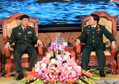 | Le général de corps d’armée Ngô Xuân Lich (droite) reçoit le général de division Li Lemin du ministère chinois de la Police |