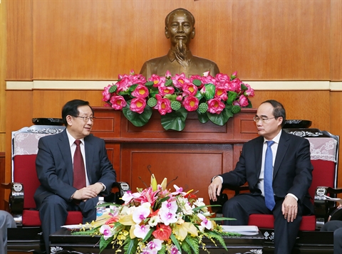 | Nguyễn Thiện Nhân (droite) et Wan Gang, l |