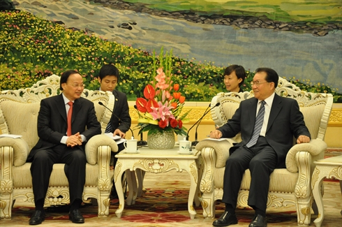 | Tô Huy Rua (gauche), secrétaire du CC du PCV et chef de la Commission centrale d'organisation du PCV, et Li Changchun, membre du comité permanent du bureau politique du PCC, le 16 février à Pékin. |