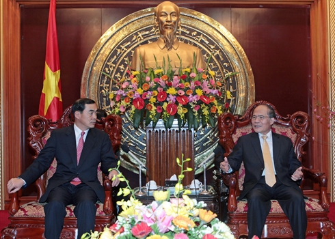 | Le président de l'Assemblée nationale, Nguyên Sinh Hùng (droite), a reçu le 16 janvier à Hanoi, Kong Xuanyou, ambassadeur de Chine au Vietnam. |