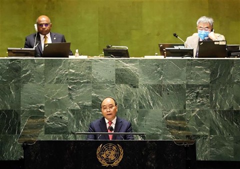 Dans son discours annoncé le 23 septembre (heure du Vietnam) dans le cadre de sa participation à la 76e session de l'Assemblée générale des Nations unies (ONU) à New York, le président Nguyên Xuân Phuc a proposé plusieurs suggestions spécifiques pour tirer parti de la coopération multilatérale avec l’ONU - la plus grande organisation - comme axe et le droit international comme base, pour répondre conjointement aux défis mondiaux complexes posés par les guerres, les différends sur les ressources, le changement climatique et en particulier le COVID-19.