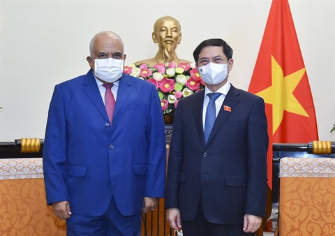 | Le ministre vietnamien des Affaires étrangères Bùi Thanh Son (droite) et l'ambassadeur cubain Nicolás Hernández Guillén. |