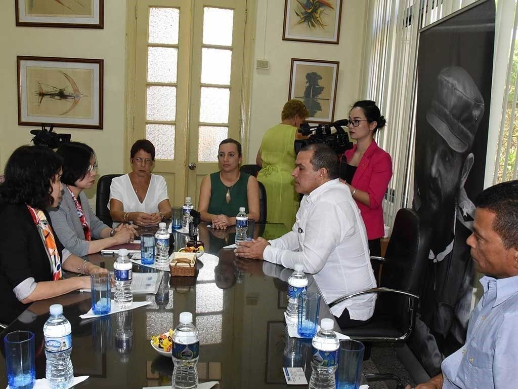 | Séance de travail entre la délégation de l'Agence Vietnamienne d’Information (gauche) et celle de Prensa Latina. |