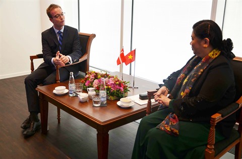 | La vice-présidente de l’Assemblée nationale (AN) Tong Thi Phong a travaillé, le 7 octobre à Copenhague, avec le ministre danois de l’Environnement et de l’Alimentation, Esben Lunde Larsen. |