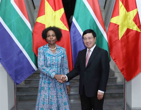 Le vice-Premier ministre Pham Binh Minh a affirmé la position du Vietnam et de l'ASEAN pour résoudre les différends, dont ceux en Mer Orientale, par des mesures pacifiques conformes au droit international, dont la Convention des Nations Unies de 1982 sur le droit de la mer et a demandé à l'Afrique du Sud de soutenir l’option et le principe du Vietnam.