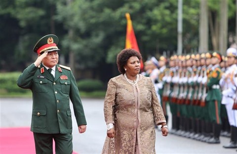 | Le ministre vietnamien de la Défense, Ngô Xuân Lich, et la ministre sud-africaine de la Défense et des Anciens combattants, Nosiviwe Noluthando Mapisa-Nqakula, le 22 août à Hanoï. |