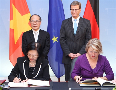 Les deux parties ont également exprimé leur satisfaction de la signature d'un accord gouvernemental par les représentants des deux pays sur la création d'une Maison de l'Allemagne à Hô Chi Minh-Ville, ainsi qu'un autre sur l'exemption de visa pour les titulaires d'un passeport diplomatique.