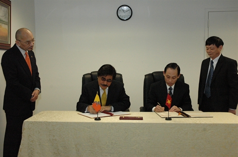 | Lê Hoài Trung (2e à droite), ambassadeur et représentant en chef de la Délégation permanente du Vietnam à l'ONU et son homologue bhoutanais Latu Oangchuk ont signé, le 19 janvier à New York, un communiqué commun sur l'établissement des relations diplomatiques vietnamo-bhoutanaises. |