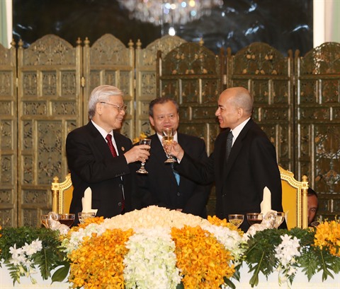 "La visite du secrétaire général du PCV, Nguyên Phu Trong, au Cambodge est une visite historique", a estimé le roi du Cambodge, soulignant que le peuple cambodgien était fier d'avoir un ami comme le Vietnam qui l'aide activement dans n'importe quelle situation, pour la paix et le développement communs durant toutes les périodes.