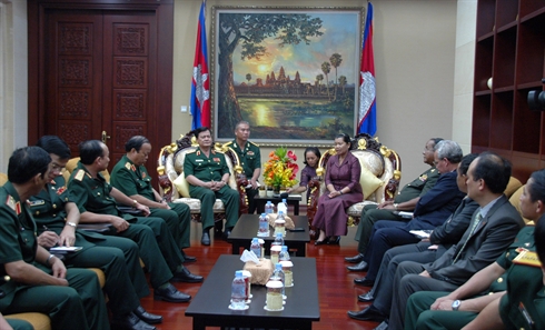 Mme Men Sam An, vice-Premier ministre permanente du Cambodge, a reçu le 19 juin à Phnom Penh le général Nguyên Thanh Cung, vice-ministre de la Défense, président du Comité de travail spécial du gouvernement vietnamien, en visite dans ce pays.