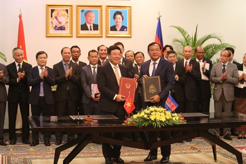 Les deux parties ont décidé d’accélérer les travaux pour accomplir les projets du marché frontalier exemplaire dans la province cambodgienne de Tbong Khmum et d’un collège à Mondulkiri en 2019. Elles se sont en outre engagées à signer des conventions sur le financement de la construction de certains ouvrages au Cambodge, dont des bâtiments de travail pour le secrétariat et des commissions de l’Assemblée nationale cambodgienne.
