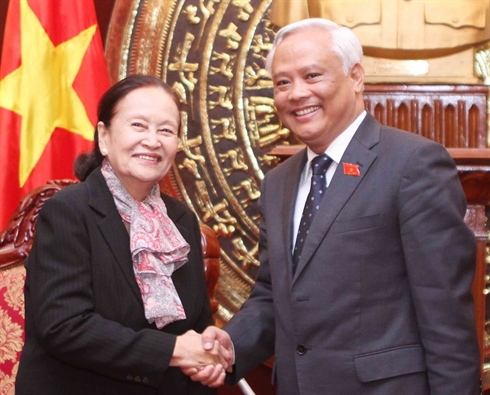 | Le vice-président de l'Assemblée nationale vietnamienne, Uông Chu Luu, et la présidente de la Commission des affaires étrangères, de la coopération internationale, de l'information et des médias du Sénat cambodgien, |