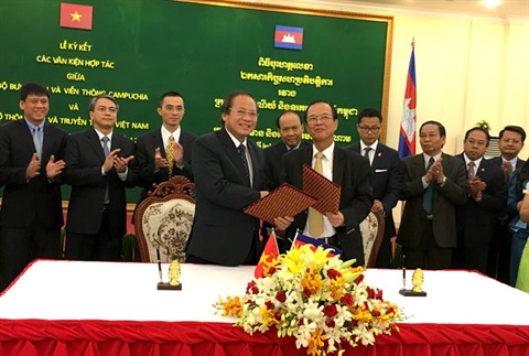 | Cérémonie de signature d'un accord de coopération Vietnam-Cambodge dans les télécommunications, le 22 septembre au Cambodge. |