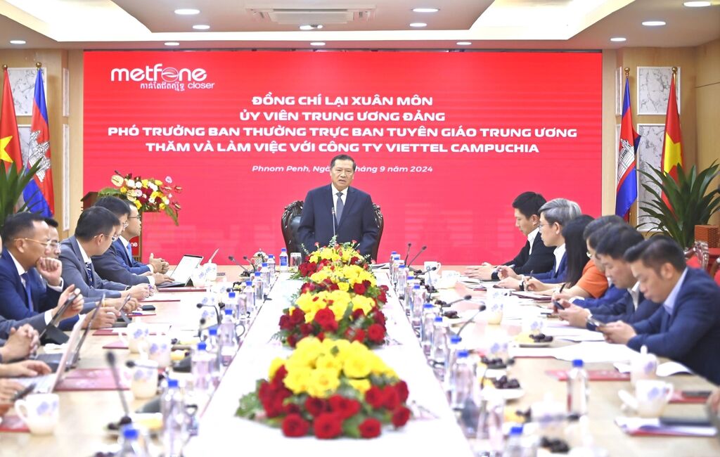 Lai Xuân Môn félicité les résultats positifs des activités du Viettel au Cambodge, en particulier la mise en œuvre de nombreux projets de transformation numérique pour les ministères et branches cambodgiens, contribuant de manière significative à la promotion de l'amitié traditionnelle et de la coopération intégrale entre le Vietnam et le Cambodge.