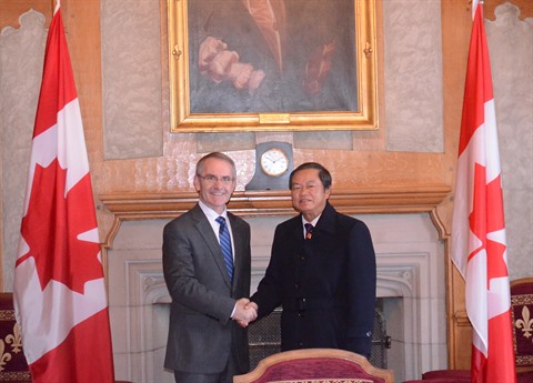 | Le vice-président de l'Assemblée nationale du Vietnam, Dô Ba Ty (droite), et le vice-président de la Chambre des communes du Canada, Bruce Stanton, le 5 décembre au Canada. |