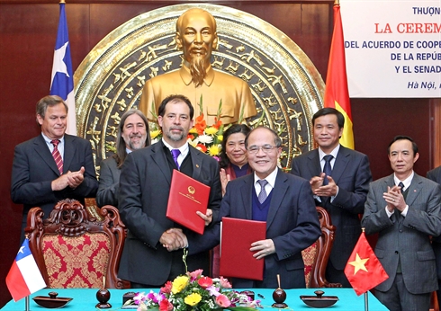 Selon cet accord, l'Assemblée nationale du Vietnam et le Sénat et le Congrès national du Chili intensifieront leur coopération et l'échange d'expériences sur la base des principes de l'indépendance et de souveraineté, et de réciprocité.