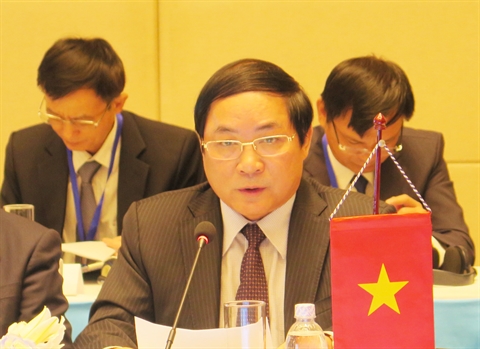 | Le général de division Dông Dai Lôc, directeur général adjoint du Département général de la Police du Vietnam, lors de la réunion, le 28 juillet à Nha Trang (Centre). |