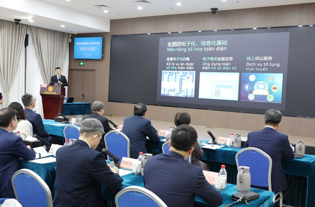 | La délégation de haut niveau de la Cour populaire suprême du Vietnam a étudié le modèle de tribunal intelligent (utilisant l’IA pour assister les jugements) au Tribunal populaire intermédiaire de la ville de Shenzhen, province du Guangdong (Chine). |
