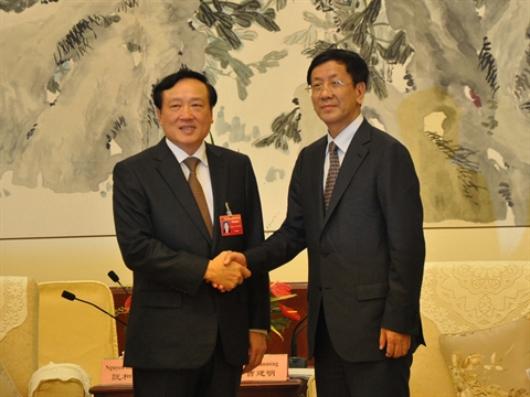 | Séance de travail entre le procureur du Parquet populaire suprême du Vietnam, Nguyên Hoà Binh (gauche), et son homologue chinois Cao Jianming, le 24 novembre en Chine. |