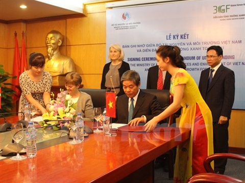 | Signature du mémorandum de coopération entre le ministère vietnamien des Ressources naturelles et de l’Environnement et le Forum pour une croissance mondiale verte. |