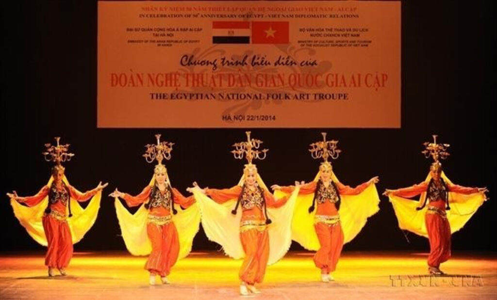 | Des artistes égyptiens interprètent une danse traditionnelle à l'Opéra de Hanoï, le 22 janvier 2014. |
