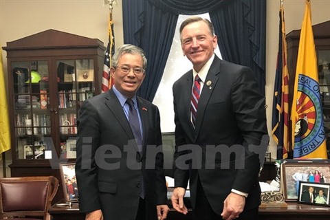 | L'ambassadeur du Vietnam aux États-Unis, Pham Quang Vinh (gauche), et Paul Gosar, représentant du Parti républicain de l'Arizona à la Chambre des représentants des États-Unis |